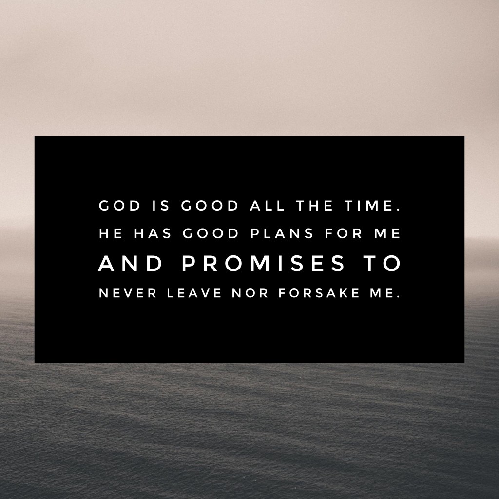 Posted on March 3, 2021March 3, 2021 Declaration of Truth – 2021/03/03 Declare and believe with me today: BIBLE VERSES AND PROMISES: Psalm 100:5, Psalm 145:9, James 1:17, Hebrews 13:5, Jeremiah 29:11, Joshua 1:9. Stay resolute my friend. Talita Share this: Share on X (Opens in new window) X More Share on Facebook (Opens in new window) Facebook Like Loading...